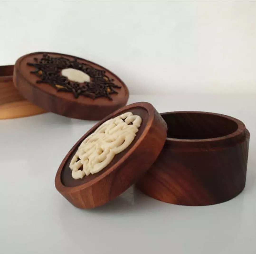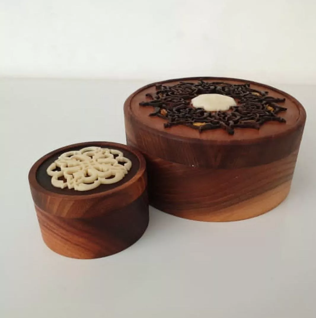 جعبه جواهرات مشبک منبت چوب و استخوان شتر
